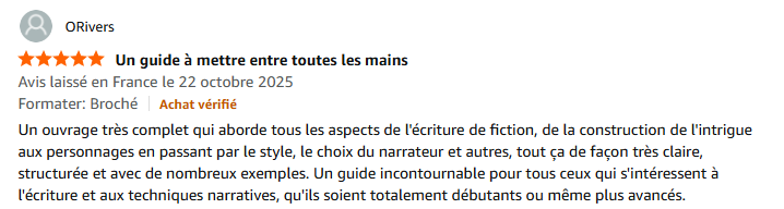 Le site Babelio recommande Le grand livre de l’écriture de fiction dans sa liste de « 15 livres pour s’exercer à l’écriture ».