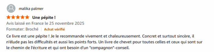 Nourrie aux techniques d’écriture anglo-saxonnes, à la culture littéraire, filmique et plus largement, aux sciences humaines, je vous propose un guide complet, très documenté et longuement mûri pour vous accompagner au mieux tout au long de votre processus d’écriture.