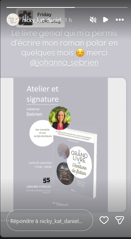 J’ai eu l’immense plaisir d’écrire ce livre sur l’art de la narration qui s’intéresse aux fondamentaux de l’écriture de fiction. Il sera donc utile aux romanciers, aux scénaristes et aux nouvellistes, qu’ils soient débutants ou aguerris. Il sera également utile à tous les décideurs (éditeurs/trices, producteurs/trices) qui souhaitent se former à l’art de raconter d’excellentes histoires.